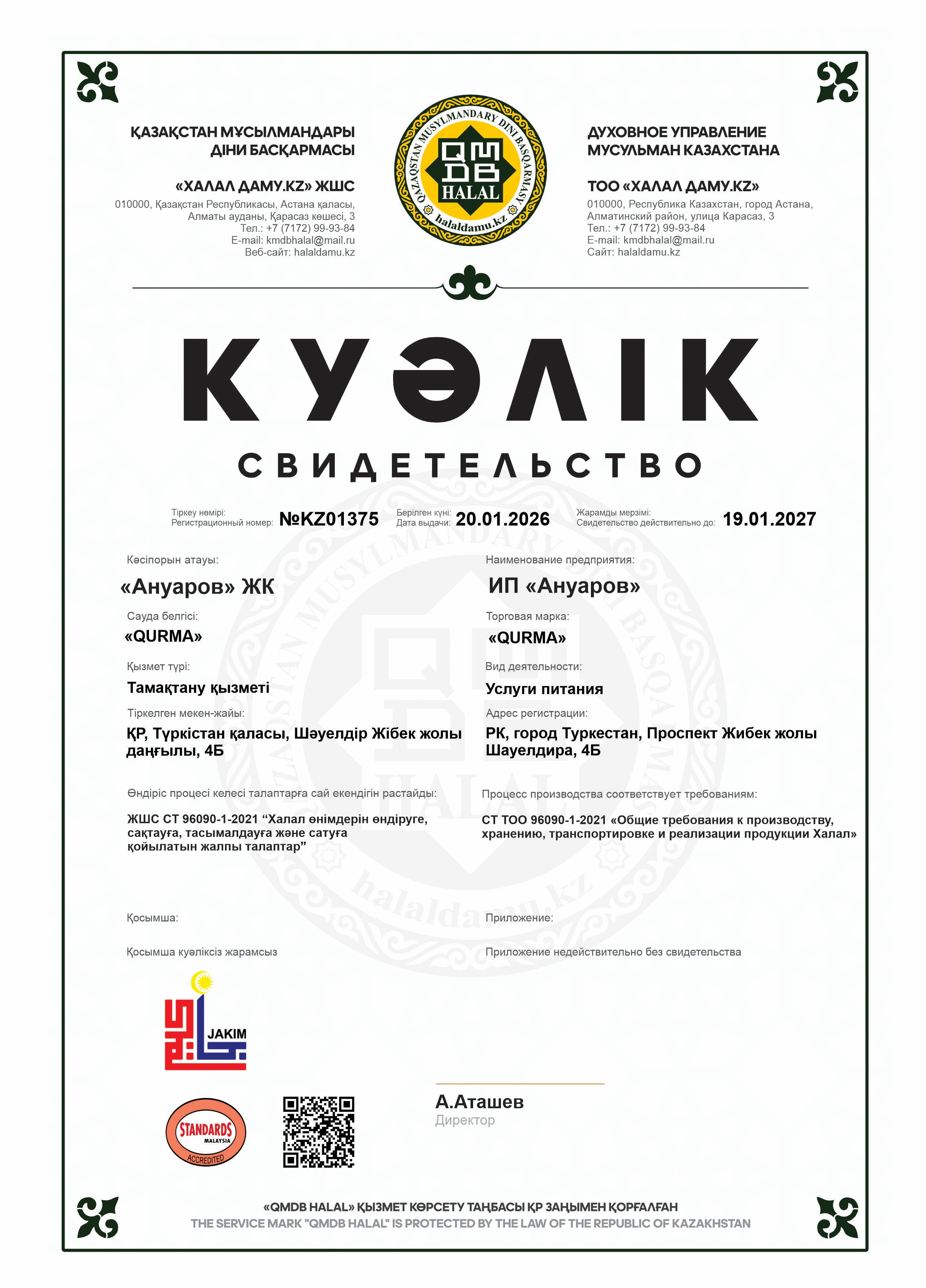 19.01.2027 ге дейін сертификатталған