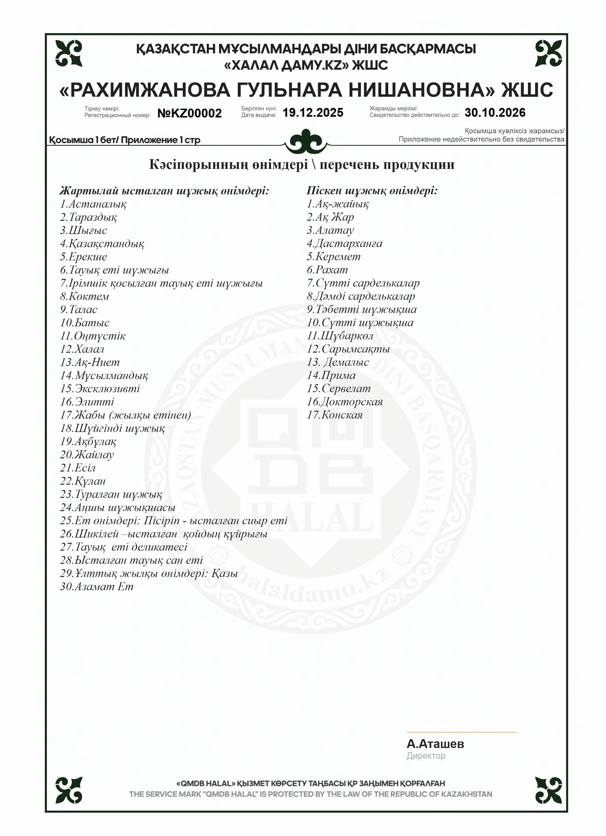 «Баракат и К», «Ақ ниет», «Бай», «София», «Ақ-Маржан», «Vkusnoed.kz»,«РУМ», «Gold»