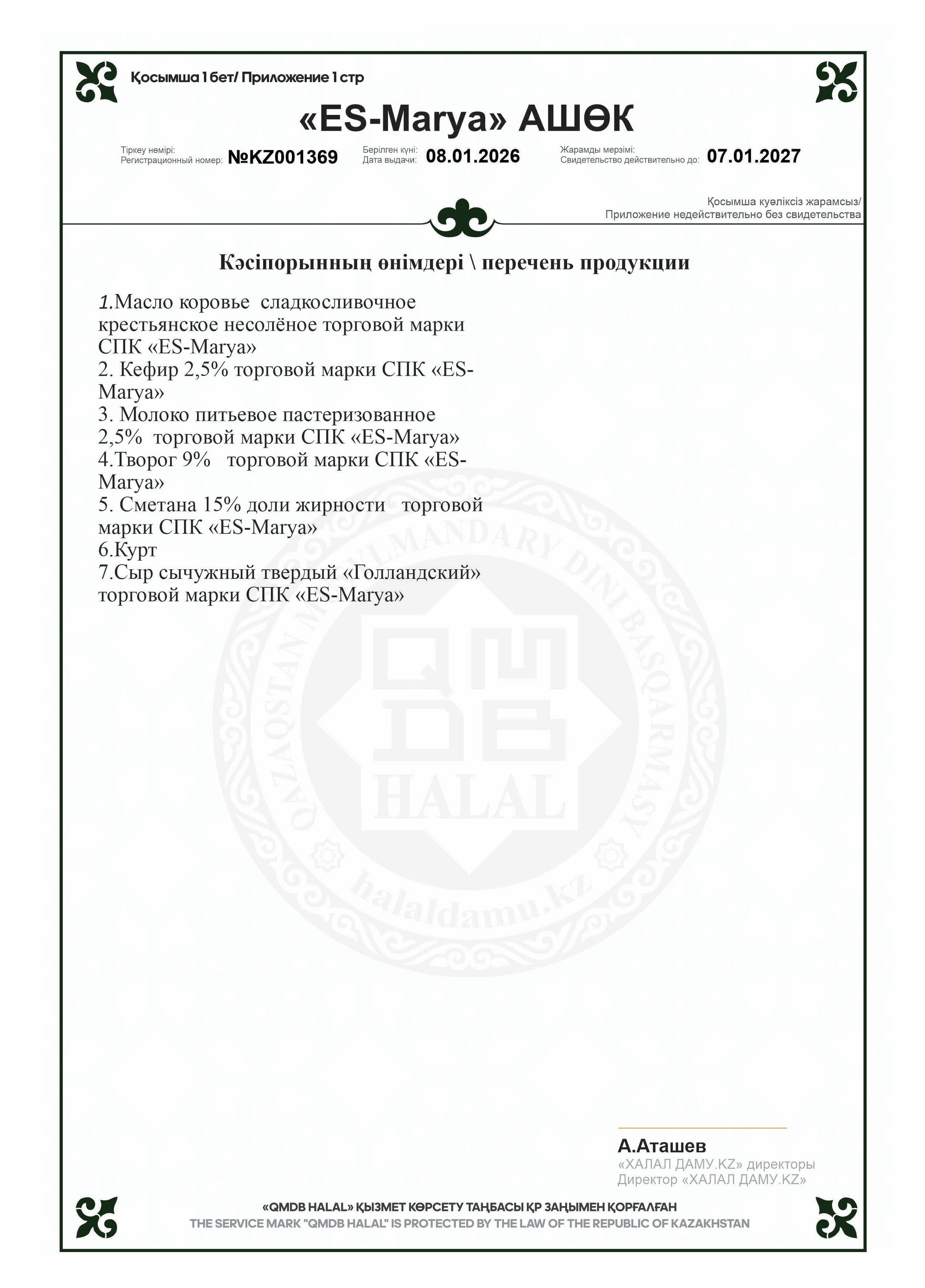 07.01.2027 ге дейін сертификатталған