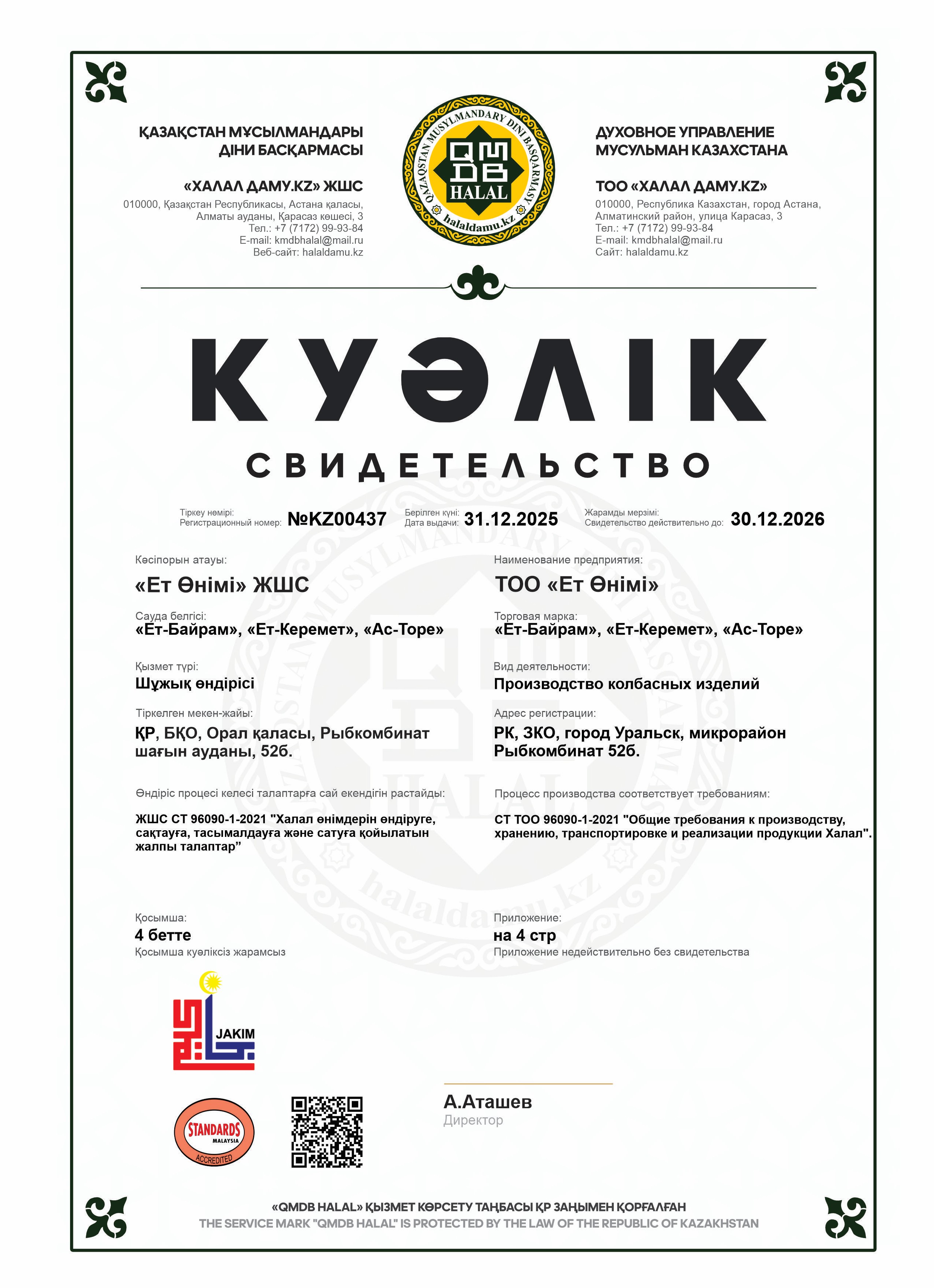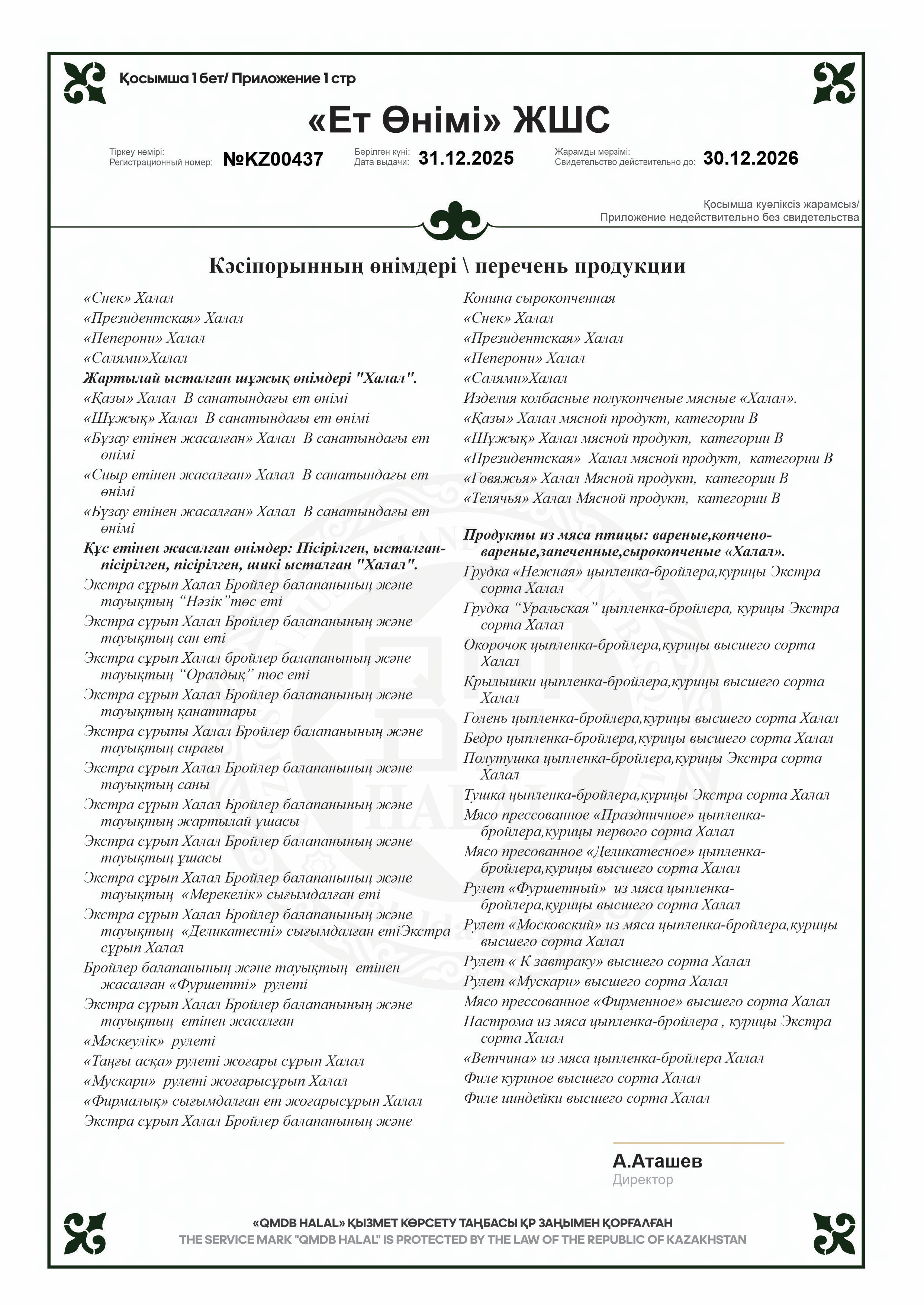 «Шұжық» Халал мясной продукт, категории В