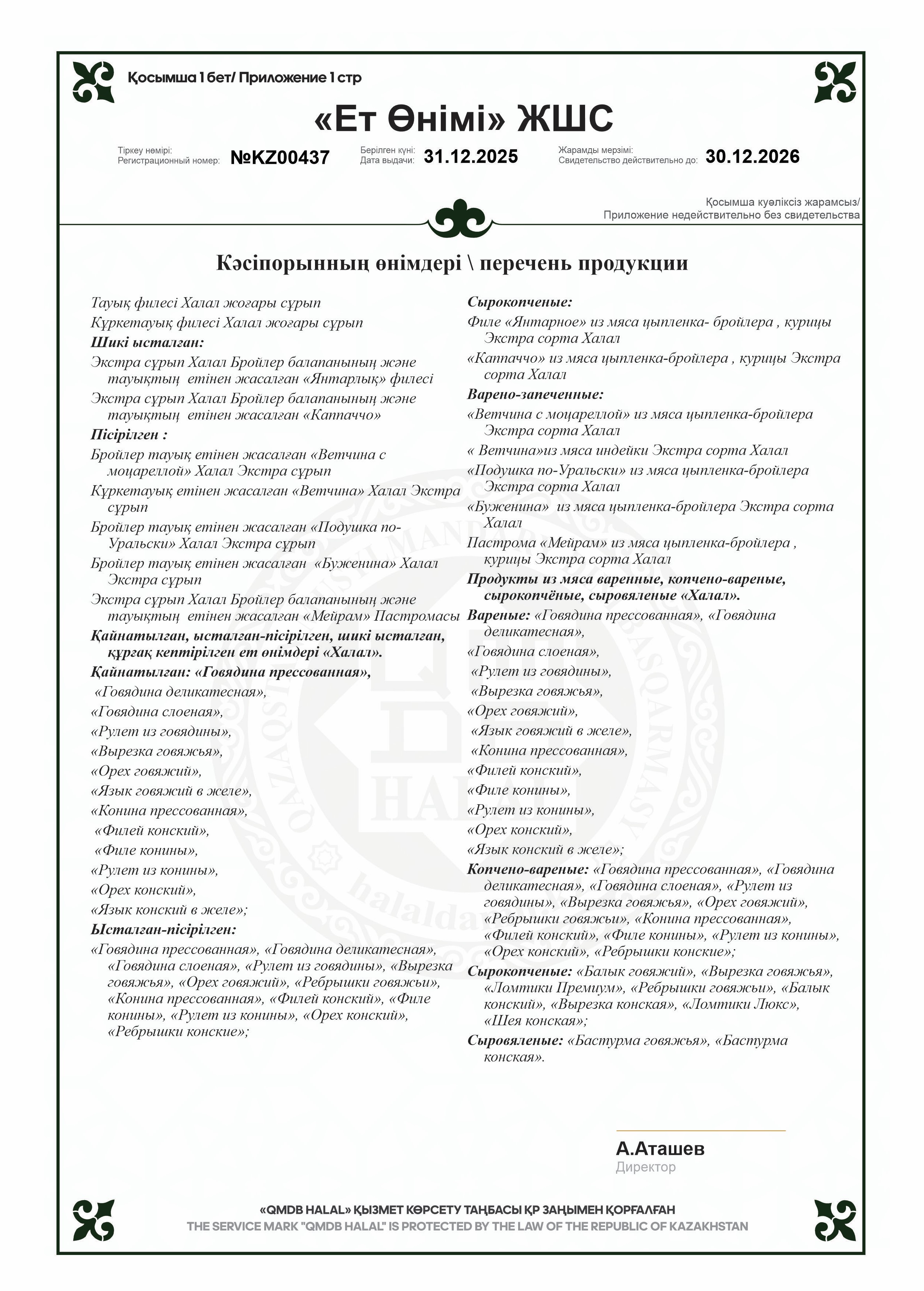 «Қазы» Халал мясной продукт, категории В