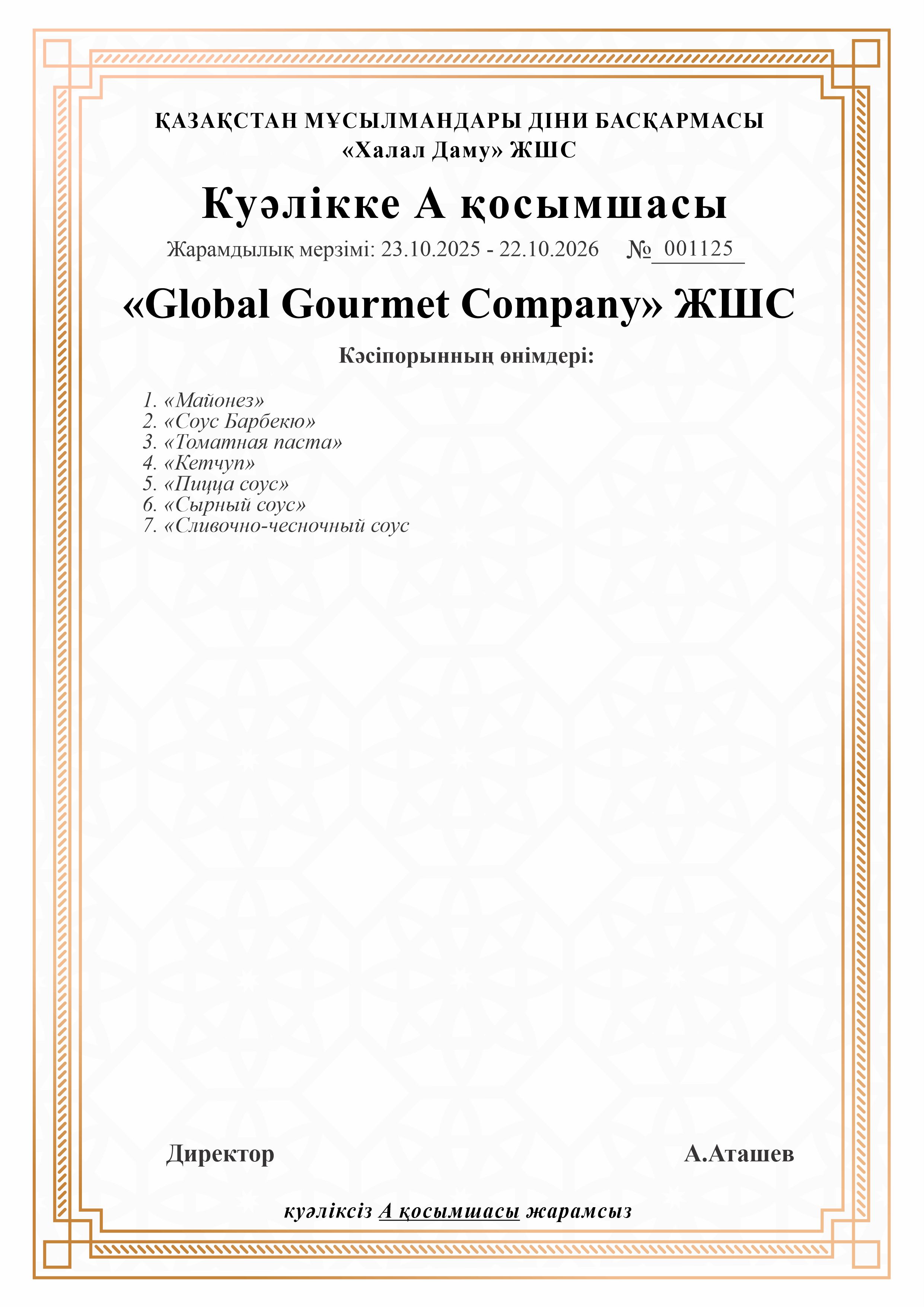 «Global Gourmet Company» ЖШС