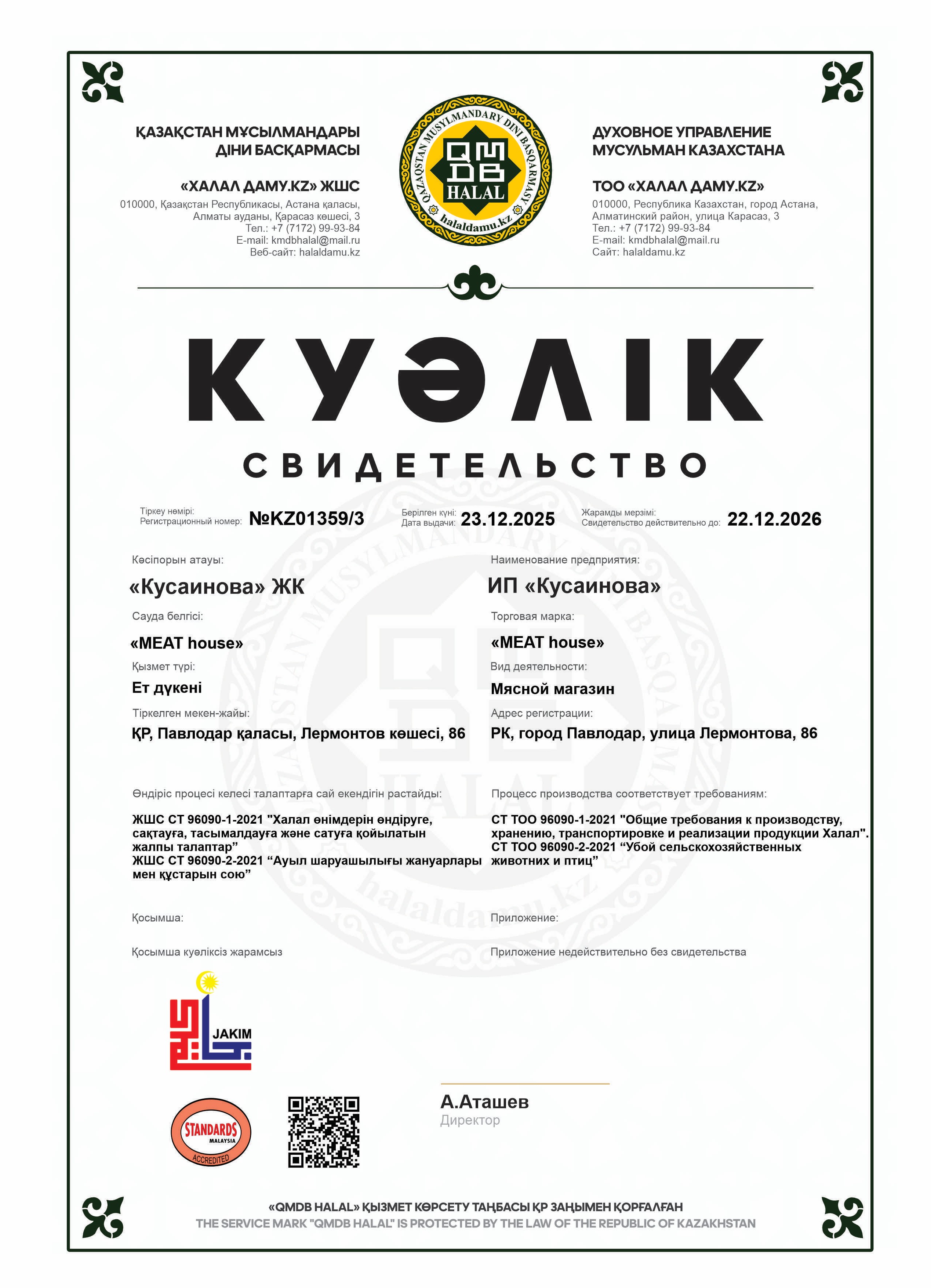 22.12.2026 ге дейін сертификатталған