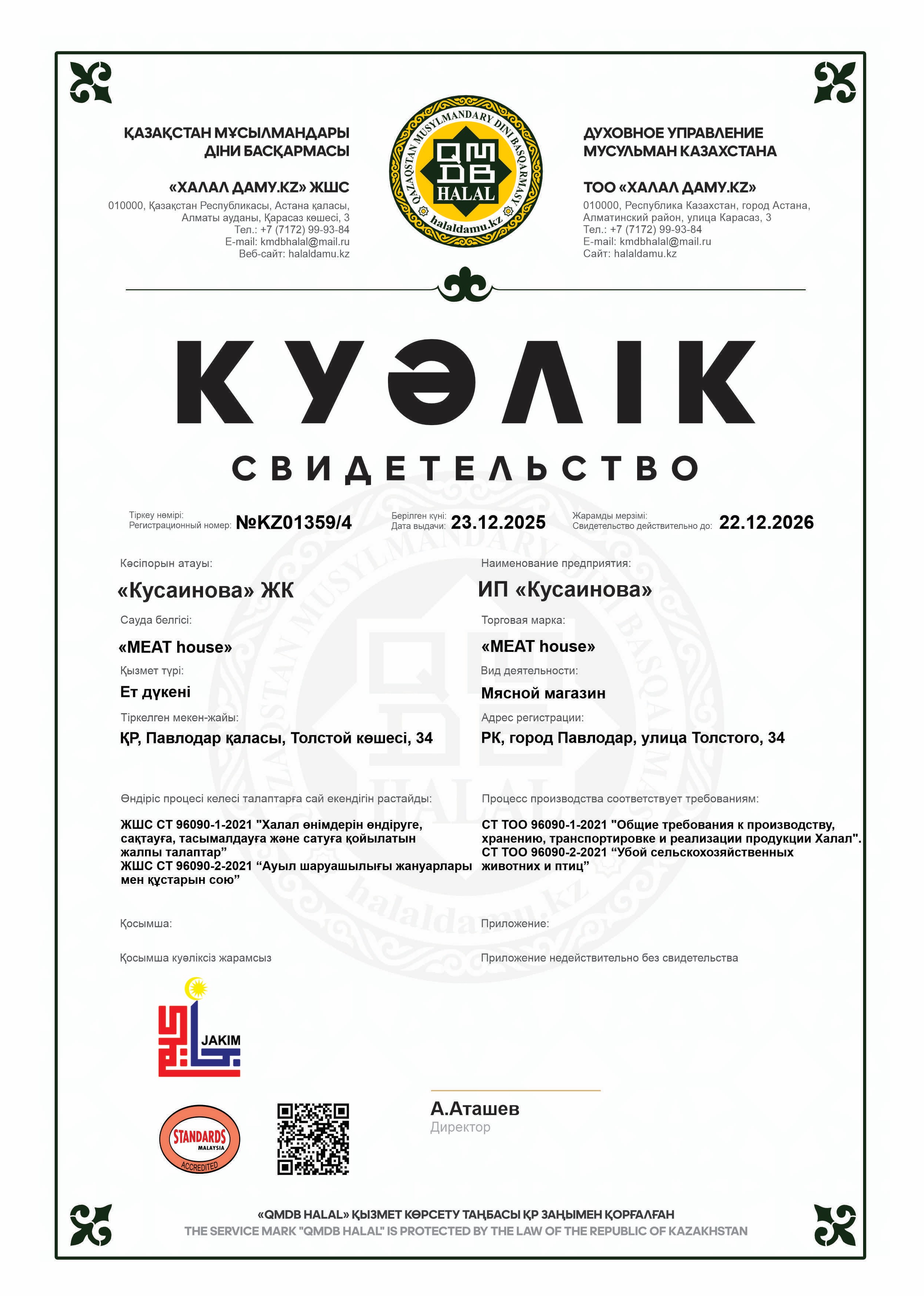 22.12.2026 ге дейін сертификатталған