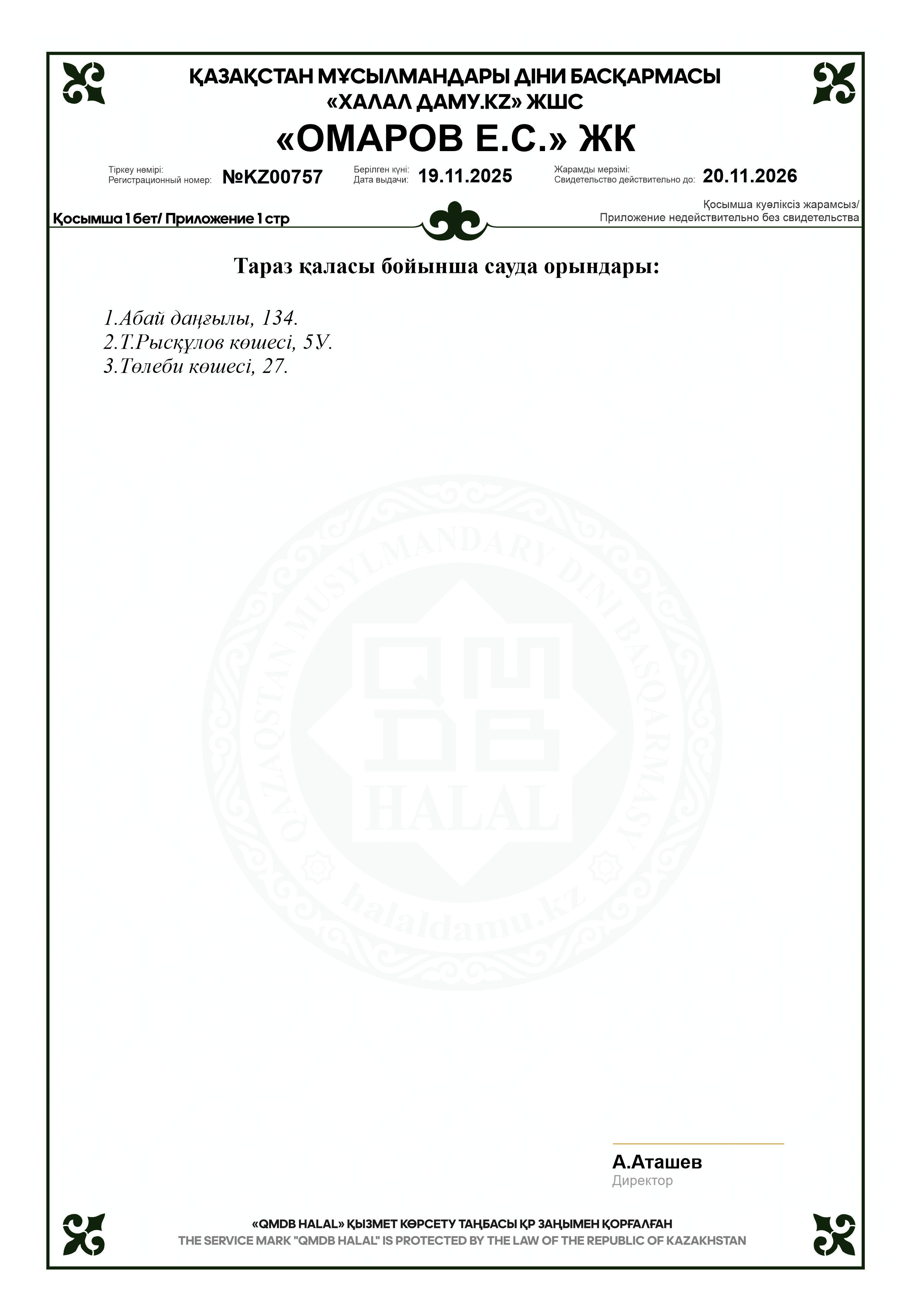 20.11.2026 ге дейін сертификатталған