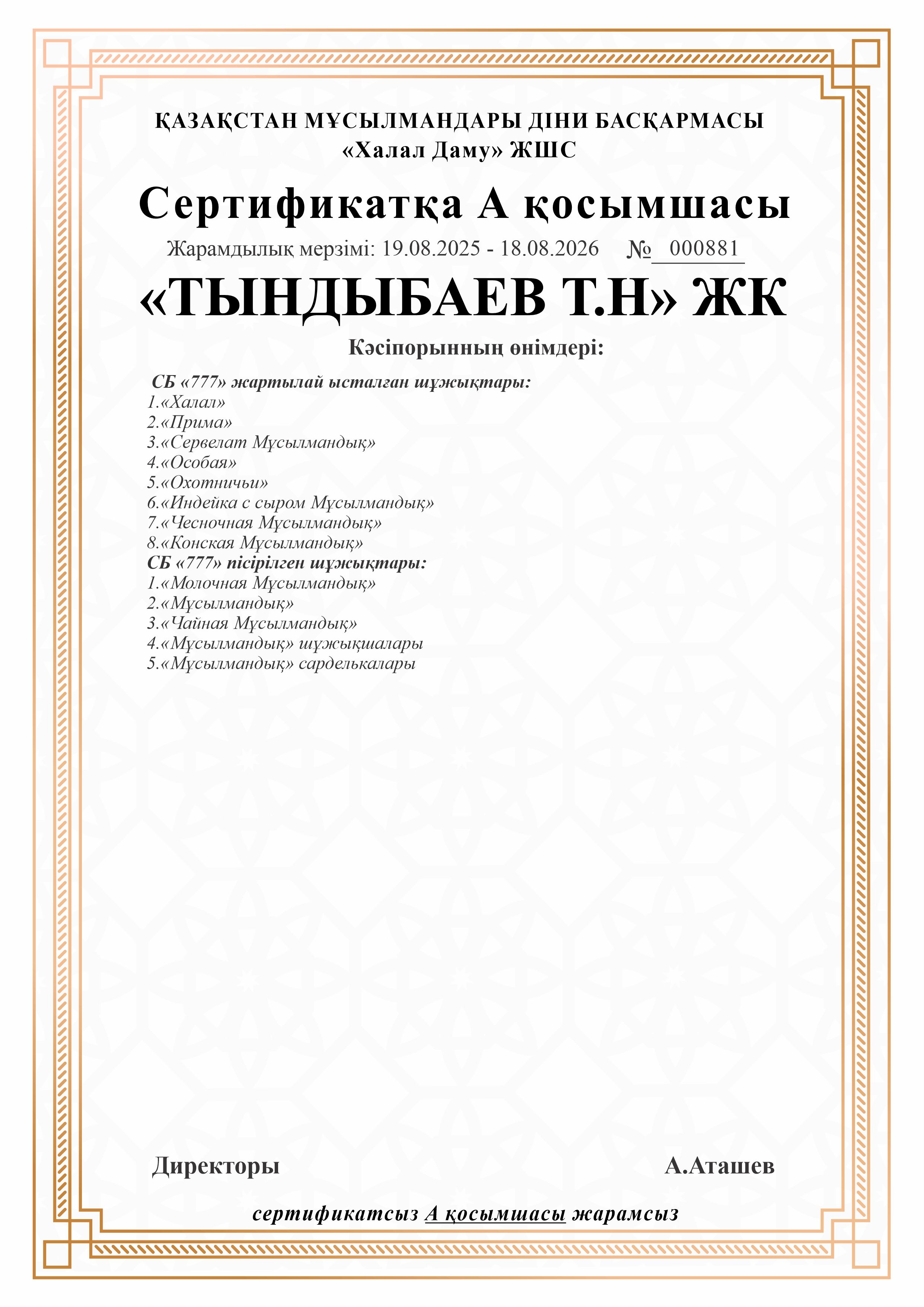 СБ «777» пісірілген шұжықтары: