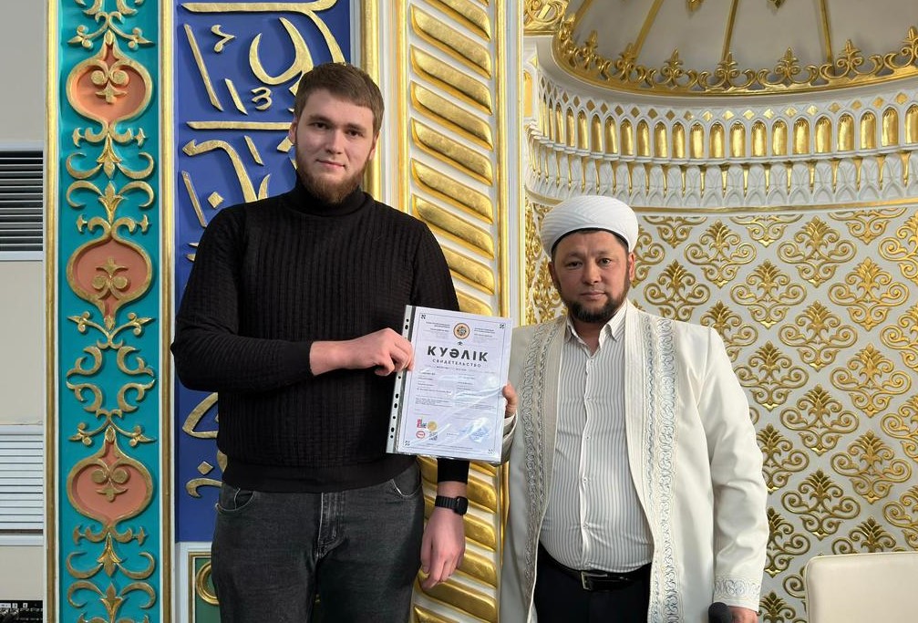 Қостанай қаласының «Филадельфия» суши-пицца орталығына Қостанай облыстық мешітінің наиб имамы Азамат Мұрзақанов халал сертификатын салтанатты түрде табыстады.